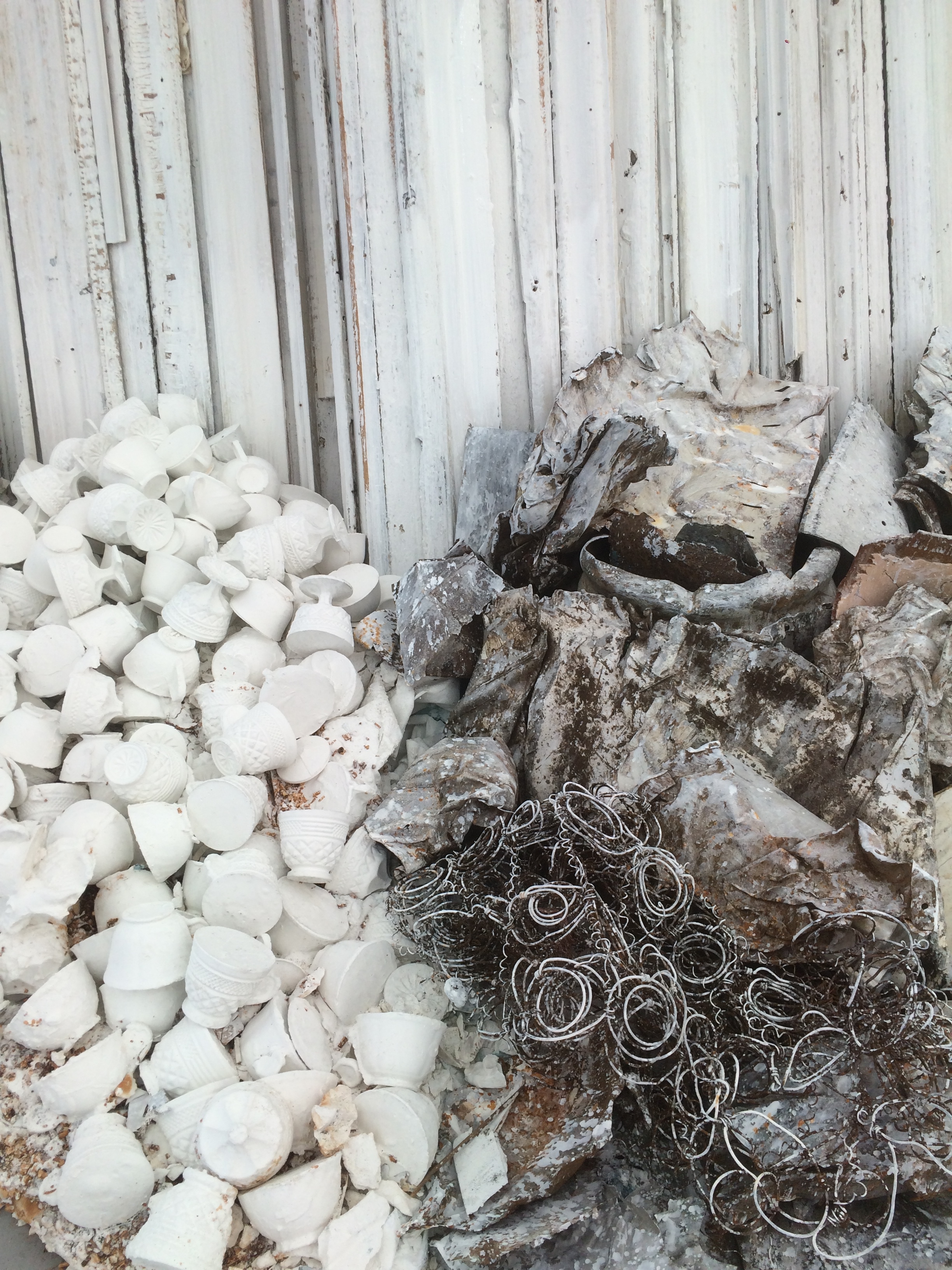 Schenkelberg envisions "Midlothian Chapel" both as a space in which to engage with contemplation of the sacred feminine and with the darkness and power of our industrial history, and as a portal. The structures are populated with goddesses from diverse faith traditions to totems originating from the artist's own personal experience, evincing reverence for family history and domestic life. The installation combines castings of personal objects, including those collected from cemeteries and domestic spaces, with those cast from architectural details carved from locally quarried limestone. From flowers, scrolls, and dragons to everyday objects, the cast relics will be encased in a glass sanctuary for contemplation as the visitor moves through the chapel. In the chapel, the relics are juxtaposed with artifacts from the industrial history of the Rust Belt, such as twisted metal, crushed wire forms, and rocks from various scrap yards in Detroit, Cleveland, and Bloomington.