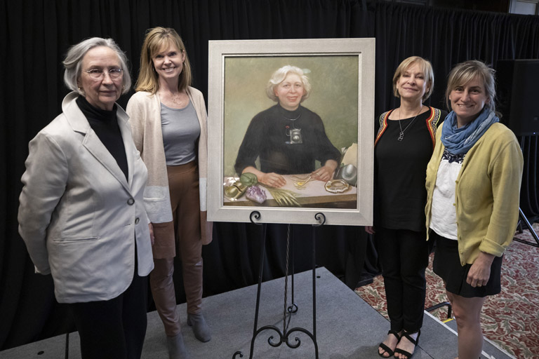 The oil painting of Eikerman by Eskenazi School of Art, Architecture + Design Professor Emerita Bonnie Sklarski joins a collection of portraits of prominent women at IU, including the first female trustee, first woman to win the Nobel Prize in Economic Science, and the first Black woman to graduate from IU. The painting was commissioned in 2021. Although the portrait is posthumous, as a new faculty member Sklarski worked alongside Eikerman, and the artists became friends.