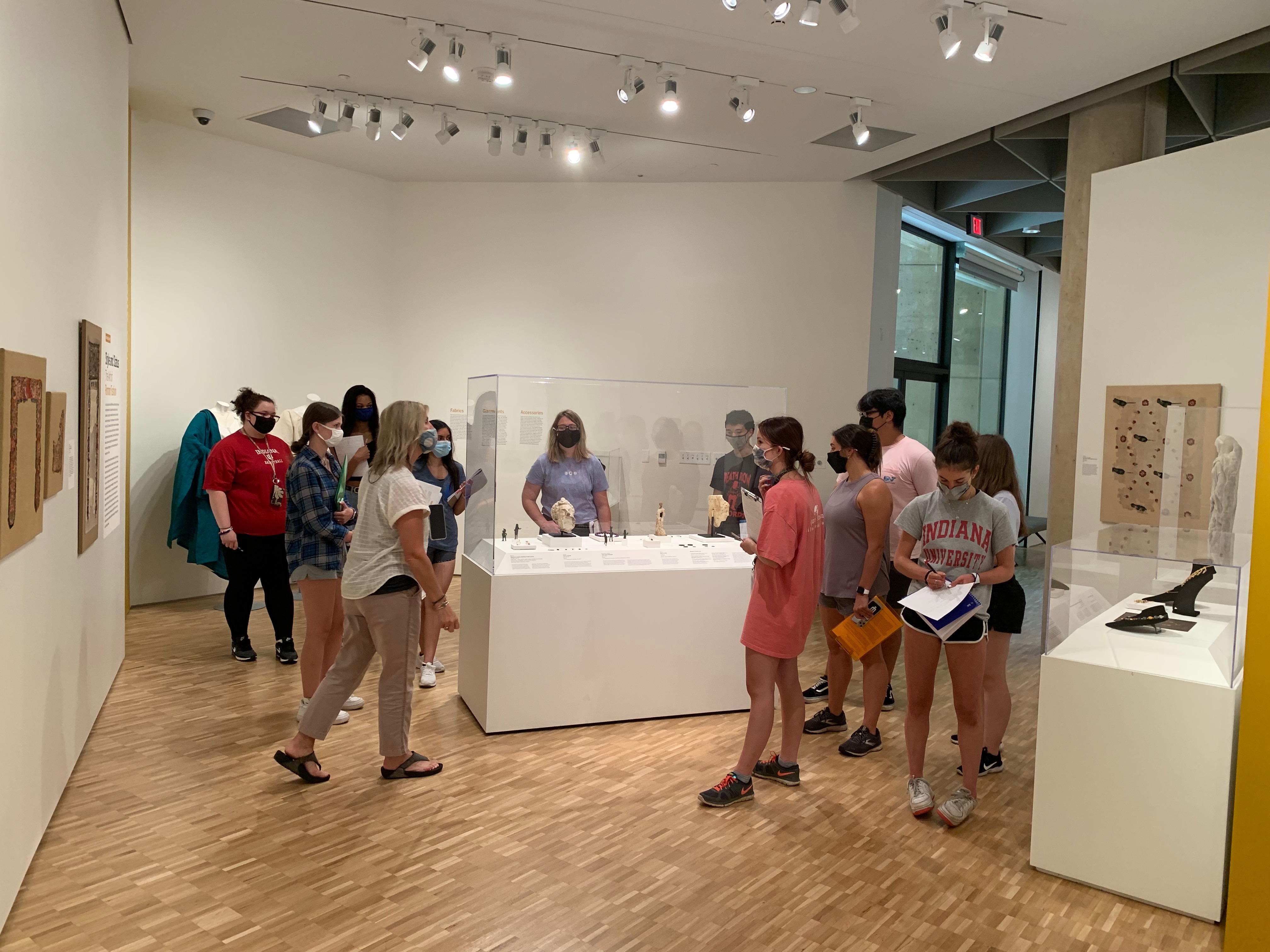 That exploration is also a literal one – both courses provide experiential learning with the added value of introducing the new IU students to the university’s resources. Christiansen’s students come face to face with artifacts related to dress and material culture in the Eskenazi Museum of Art, the Sage Collection, the Lilly Library, the Kinsey Institute, and the Museum of Archaeology and Anthropology.