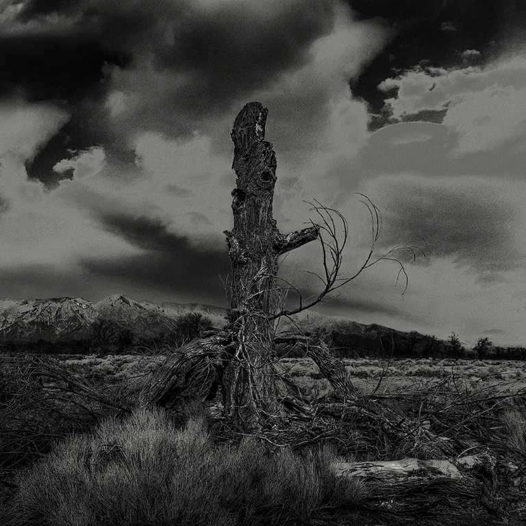 JN:I was drawn to trees as the subject for Witness Trees during a solitary visit to the Amachi camp in southeast Colorado. It was an intensely personal experience, being alone in that vast, cold landscape. The trees at the camp seemed almost like silent observers, standing stoically by the foundations of the camp buildings. This presence was powerful; they felt like living witnesses to the history that unfolded in that space. I felt compelled to capture them not just as elements of the landscape, but as central figures that stood watch over the area. Their enduring presence at these historic sites inspired me to use them as a focal point to convey a deeper narrative about memory and survival.
