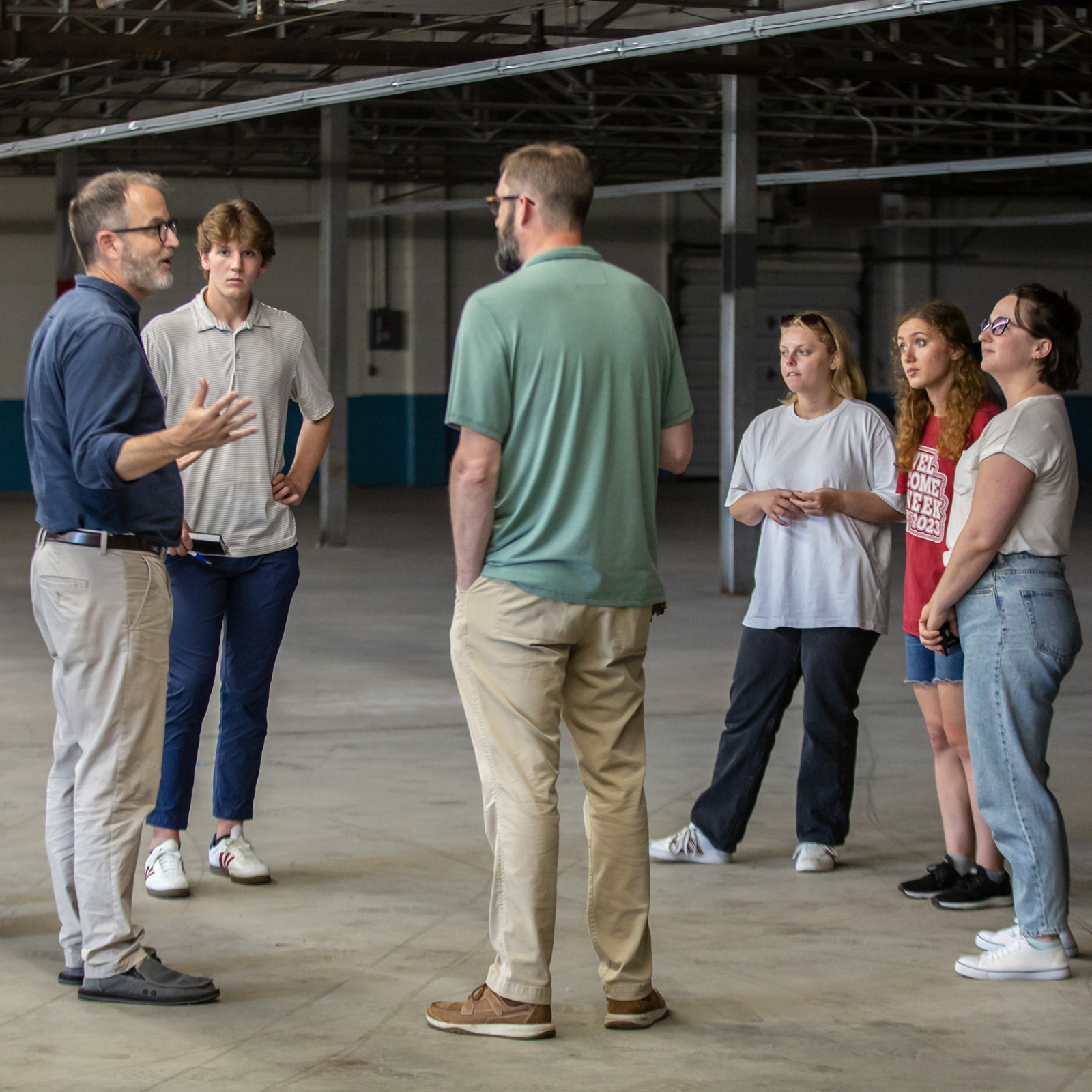 Will, a comprehensive design student, created pre-architectural renderings for Launch 99, a project in Loogootee that is taking a former manufacturing facility and turning it into a co-working space and entrepreneurship hub. Will’s renderings helped visualize layout concepts, areas for a café, group meeting space, transportable offices, and even areas for public art or murals.