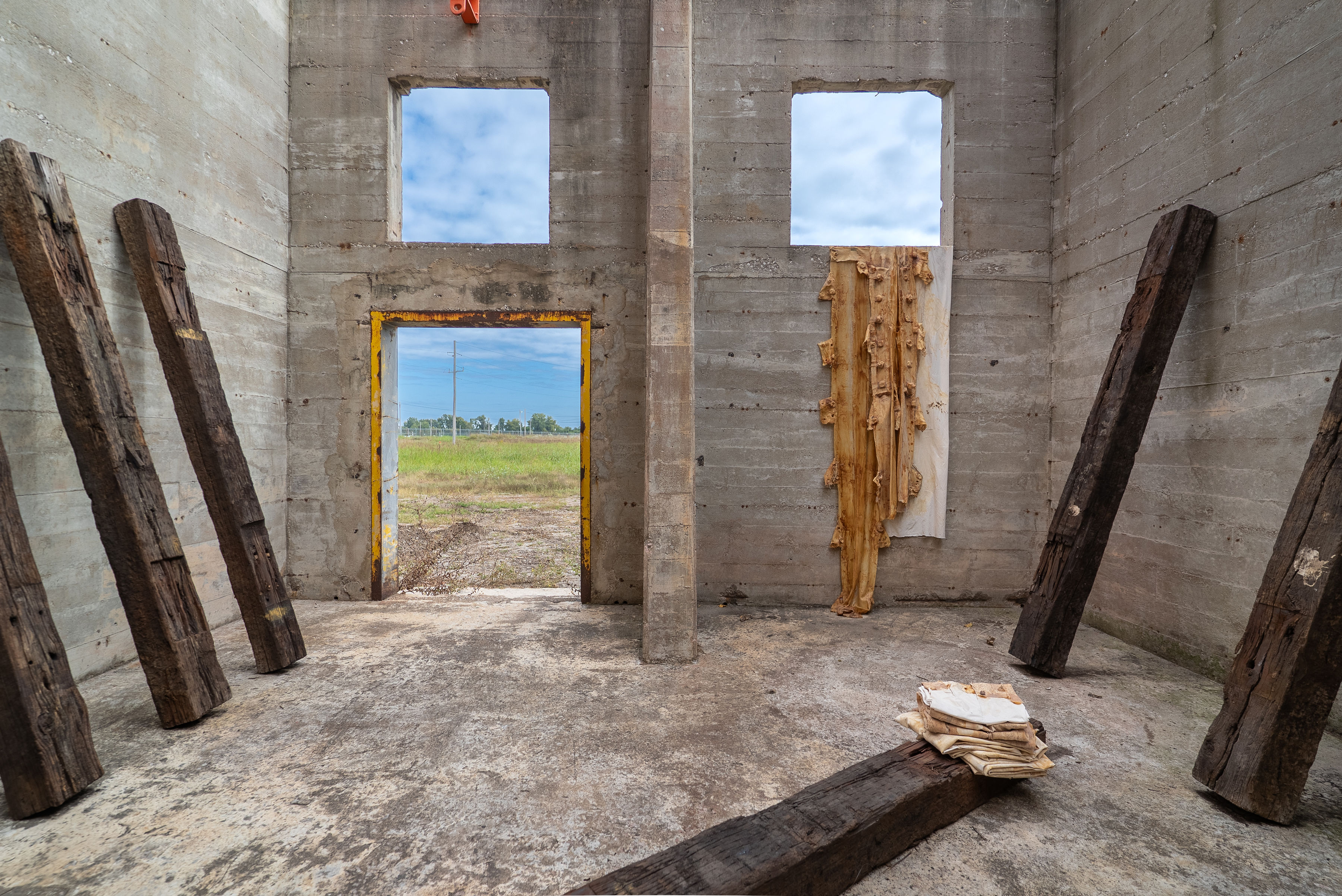 In her current collaboration “A Matter of the Invisible” at the National Building Art Center outside of St. Louis (September 27-November 21, 2025), Pardo examines how histories of Mexican labor are inscribed -- although often overlooked -- within the built environment of theheartland. In the setting of a former steel foundry, Pardo’s project “Palíndromo” engages the post-industrial landscape of the Rust Belt as a living archive of labor. In gathering and arranging metal railroad spikes and casting railroad tracks in latex, Pardo indexes the work of the Mexican workers who, through the Bracero Program at mid-century, laid railroads across the Southwest and Central Plains. Her project “Palíndromo” reinserts the contributions of these braceros within the industrial and agricultural history of the United States, a history from which they are markedly absent.