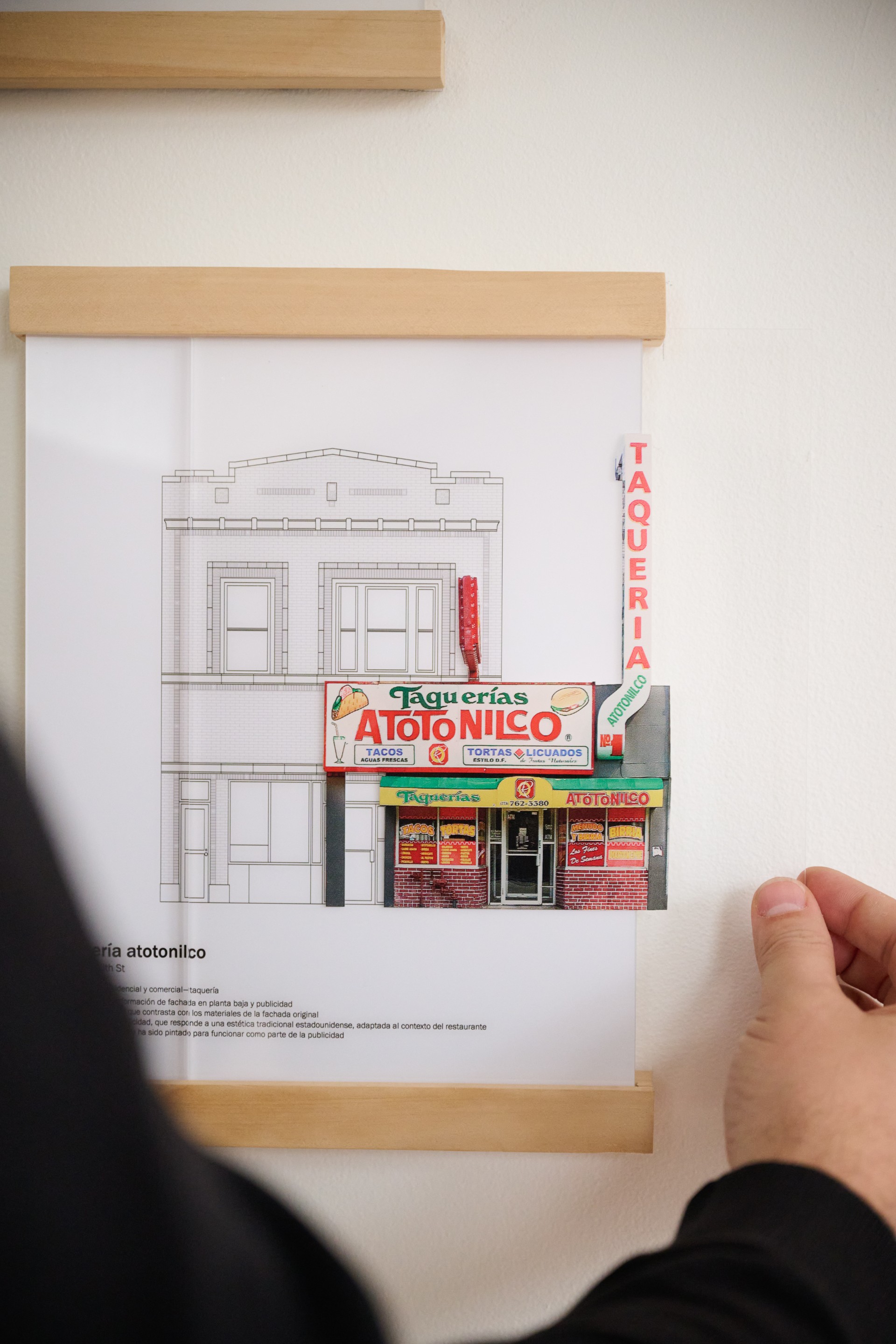 The project “Greetings from Chicagoacán” constituted one half of the exhibition “Thus We Advance, Harvesting Our Caravans,” held at the MAS Context Reading Room in Chicago from May 15-June 14, 2025. A collaboration with urban researcher and photographer Inés Vachez Palomar, the exhibition juxtaposed the built environments and placemaking efforts of Mexican communities on both sides of the border.